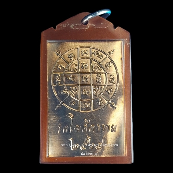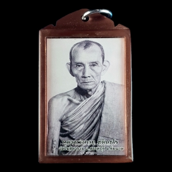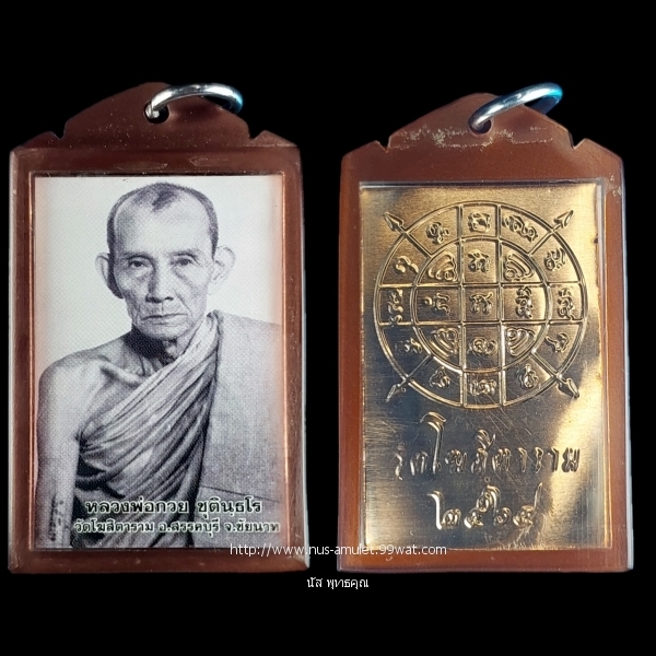 รูปถ่ายครึ่งองค์ หลวงพ่อกวย ชุตินธโร วัดโฆสิตาราม ชัยนาท ปี 2564 รุ่นรวมใจศิษย์ หน้ายันต์ดวงแก้วพระสีวลี(ปั้มนูน) หลังแผ่นทองแดงยันต์หนุนเสริมดวง |