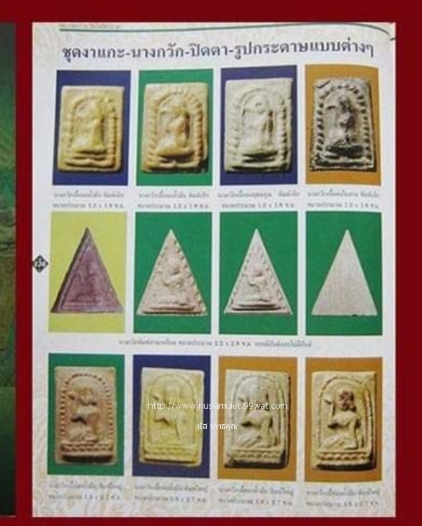พระนางกวัก เนื้อผงน้ำมันดำ หลวงพ่อกวย วัดโฆสิตาราม จ.ชัยนาท จัดสร้างขึ้นในปี พ.ศ. 2515 ขนาดกำลังเลี่ยมแขวนสวย สภาพสวยสมบูรณ์ มาพร้อมบัตรรับรอง ท่ามกลางของเก๊ที่เกลื่อนสนามในเวลานี้ ซึ่งปัจจุบันในหนังสือเล่นหากันราคาแรงขึ้นทุกวันครับ (เนื้อผงน้ำมันดำ ถือว่าเป็นเนื้อที่หายาก และ พบเจอน้อยมาก) |